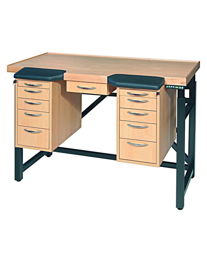 STANDARD BENCH, TOP 140x70 cm / HYDRAULIC ELECTRIC HEIGHT ADJUSTMENT 95...115 cm / FIXED ARMRESTS / CENTRAL DRAWER / 1 CABINET