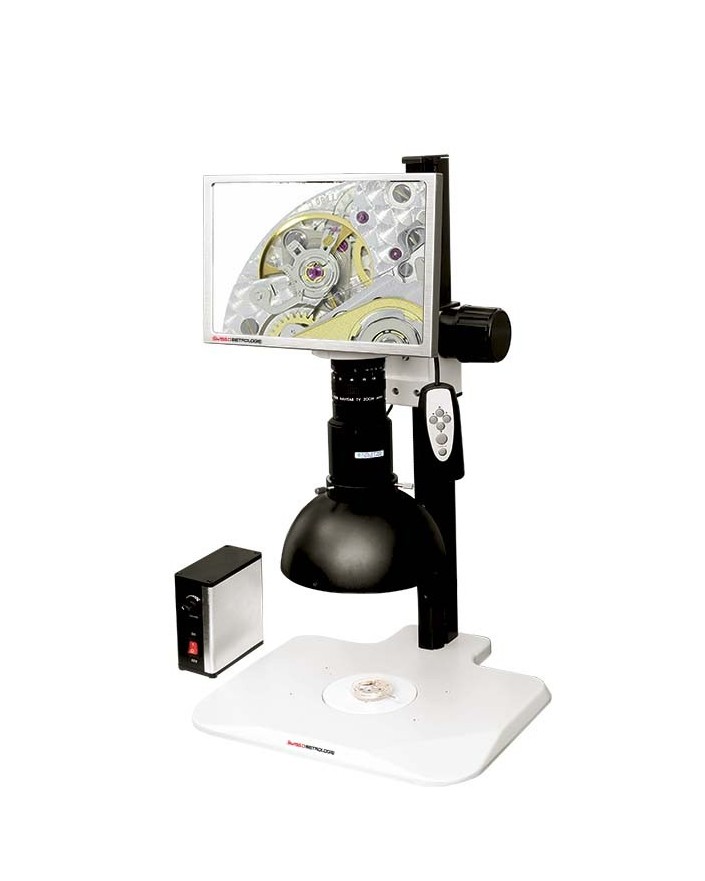 e système d’inspection vidéo SMV-1 HD fusionne les dernières technologies vidéo haute-définition avec la meilleure optique macro permettant de fournir une qualité d’image d’une fluidité exceptionnelle. - L’écran plat de 10’’ intégré améliore la qualité de l’image et le confort de l’opérateur - Technique d’éclairage dôme par réverbération pour une inspection de surface optimisée même sur des pièces poli-glacées - Le zoom macro 7000 assure une prise en main intuitive et rapide. Principales caractéristiques : - Caméra HD 720P avec écran plat 10’’ intégré - Capture d’image directement sur carte mémoire SD - Télécommande de réglage de l’écran avec mire de pointage - Variateur d’éclairage LED indirecte par réverbération - Zoom optique Navitar 18-108 mm offrant une excellente qualité et une distance de travail de 127 mm à l’infini - Grossissement de 3x à 55x, avec large champ de vision (exemple : 70 x 44 mm à 3x). Caractéristiques techniques : - Capteur numérique CMOS 1 / 2.5” - Résolution 1280 x 800 @ 60 fps (24bits), 16.10 ratio d’aspect - 2 mégapixels - Ajustement individuel des couleurs de l’écran : Bleu - Rouge - Vert - Balance des blancs automatique ou manuelle - Contraste image automatique ou manuel - Carte mémoire SD de 8 GB. Éléments inclus dans la livraison : - MSA14.150-B : Bague d’adaptation objectif/statif - MSA14.150-C : Caméra HD avec écran plat 10” - MSA14.150-E : Dôme d’éclairage avec LED - MSA14.150-P : Housse de protection - MSA14.150-SD : Carte SD de 8 GB - MSA14.150-Z : Zoom Navitar 7000 6x (18-108 mm).