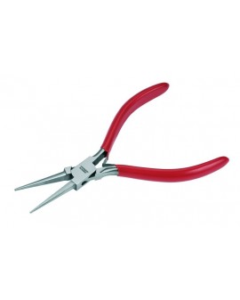 PRECISION PLIERS WITH HALF-ROUND LONG THIN BENT NOSE, PVC PROTECTED HANDLES / L145 mm - NOSE L40 mm / WITH 2 RETURN SPRINGS