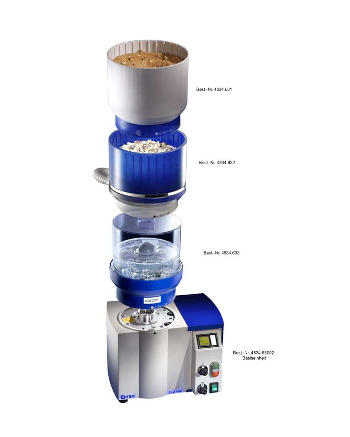 Timer, speed control via frequency converter, up to 1900 rpm, automatic change of direction of rotation, 6 l work container, 200 g stainless steel pins M 5/5, 1 l Compound SC 3