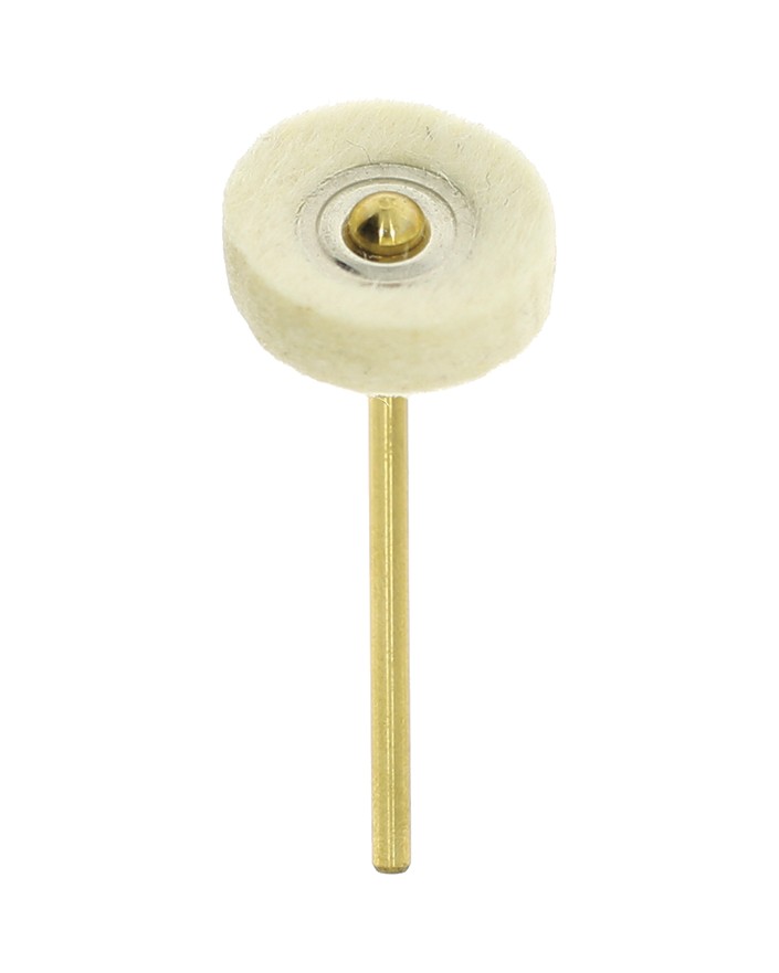 FELT POLISHING BRUSH ON SHANK, SOFT THICK WHEEL SHAPE / Ø 17x5 mm / SHANK Ø 2.35 mm