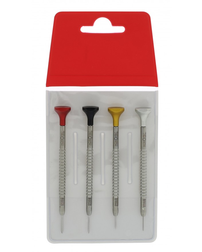 ASSORTMENT OF WATCHMAKER SCREWDRIVERS IN PLASTIC POUCH, 4 PIECES / Ø 0.60-0.80-1.00-1.20 mm