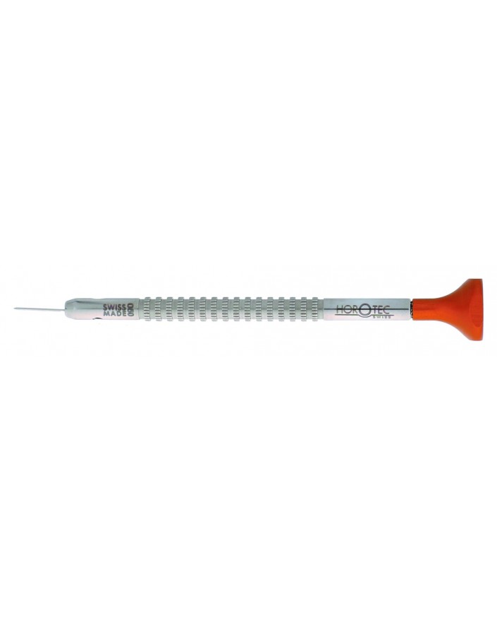 STAINLESS STEEL WATCHMAKER SCREWDRIVER WITH ANODISED DARK ORANGE ALUMINIUM HEAD MOUNTED ON BALL BEARINGS, Ø 0.50 mm
