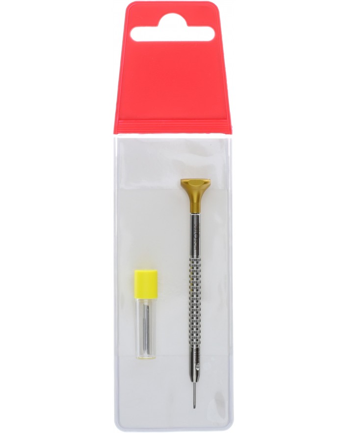 WATCHMAKER SCREWDRIVER YELLOW HEAD, Ø 0.80 mm / TUBE WITH 3 BLADES / IN PLASTIC POUCH