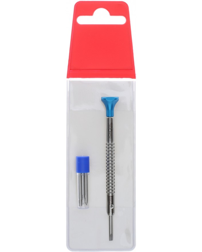 WATCHMAKER SCREWDRIVER BLUE HEAD, Ø 2.50 mm / TUBE WITH 3 BLADES / IN PLASTIC POUCH
