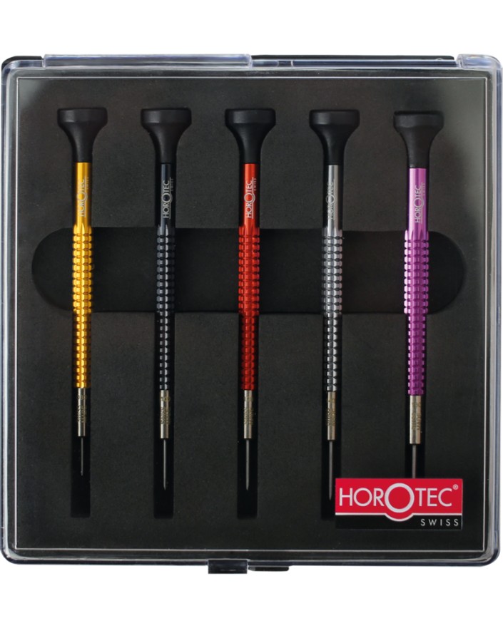 ASSORTMENT OF WATCHMAKER SCREWDRIVERS MSA01.020-x IN PLASTIC BOX, 5 PIECES (0.80, 1.00, 1.20, 1.40 ET 1.60 mm)