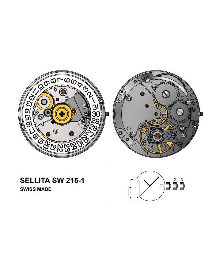 MOVEMENT SELLITA 215-1, 11 1/2''', HEIGHT 3.35 mm, HAND-FIT. 5, D6 (ROUND WINDOW), 3 HANDS