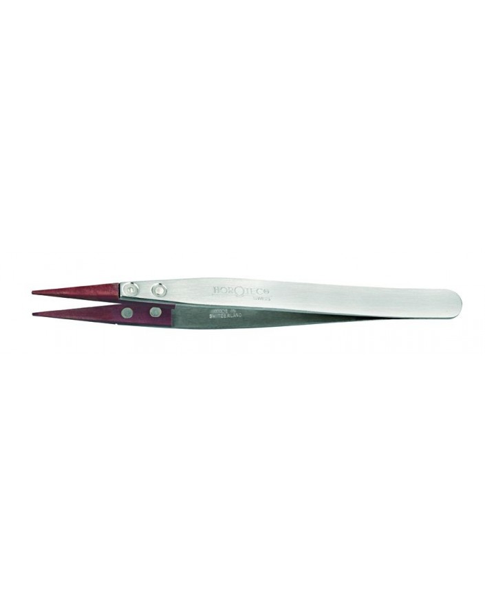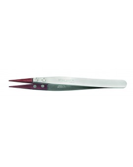TWEEZERS WITH RED VULCANIZED FIBRE TIPS, FINE TIPS / 100% ANTIMAGNETIC NICKEL / L125 mm