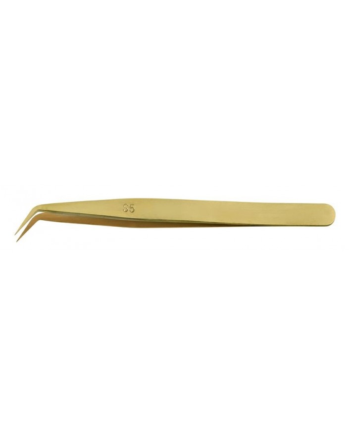 BENT TWEEZERS WITH FINE TIPS, No. S5C / BRASS / L135 mm
