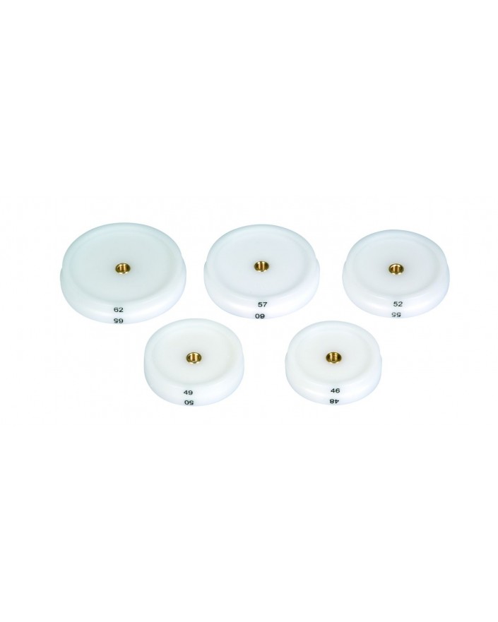 ASSORTMENT OF REVERSIBLE SCREW-ON DIES SPECIAL LARGE DIAMETER FOR CLOSING CASES WITH SNAP-ON BACKS, 5 PIECES / Ø 46-48...62-65 mm