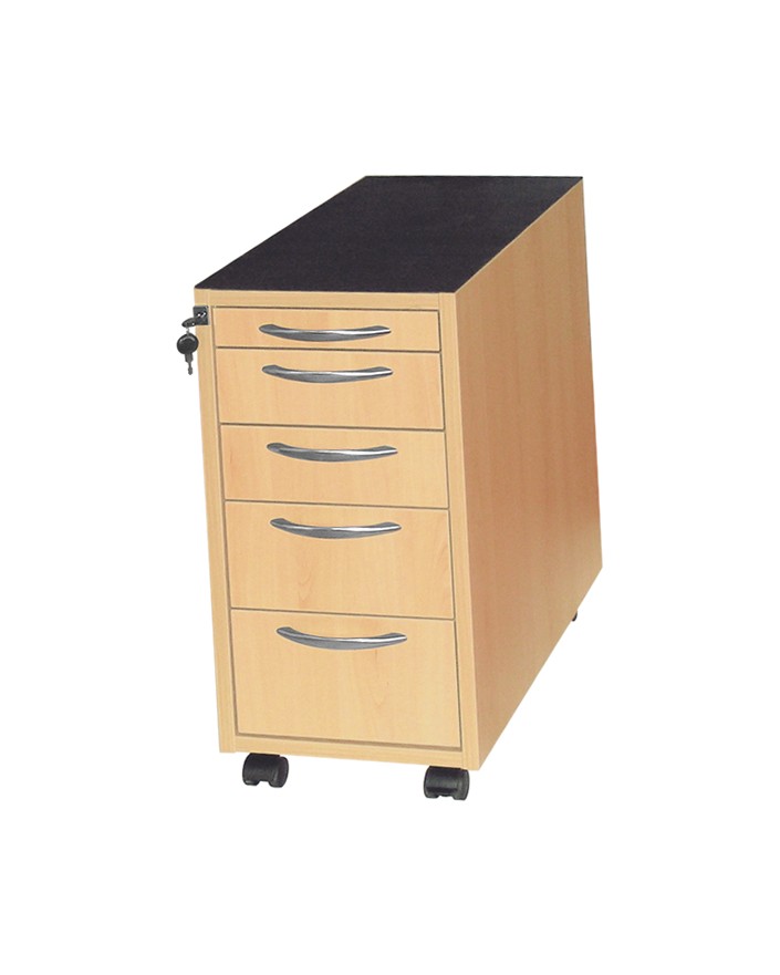 Layette d'horloger mobile, 4 tiroirs et 1 tablette, montée sur 4 roulettes pivotantes dont 1 bloquante. 60x30,5x63 (Lxlxh)