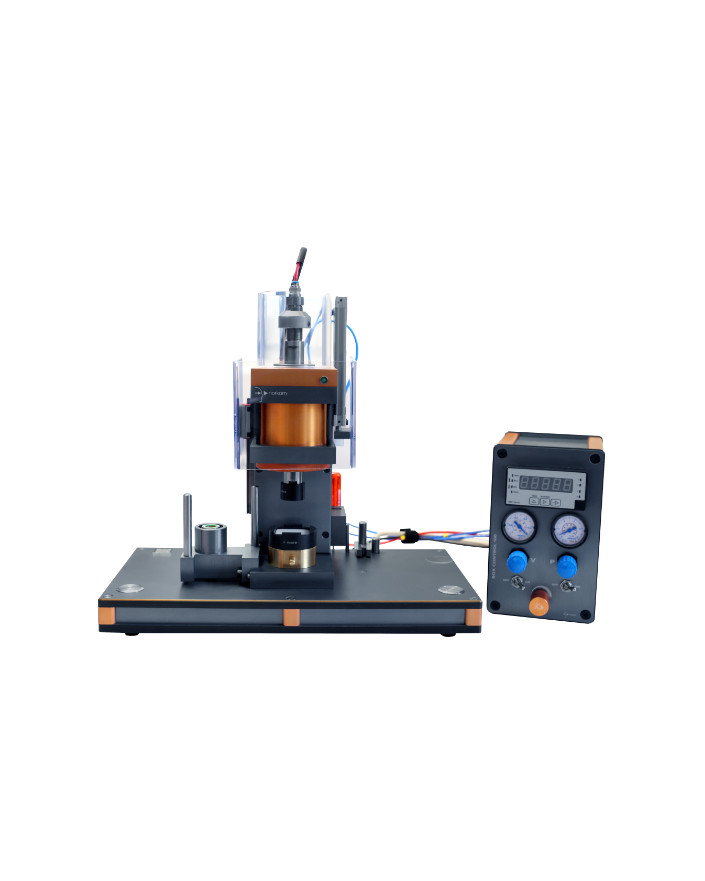 Presse électropneumatique semi-automatique développée et fabriquée en Suisse par NORKOM SA.