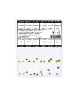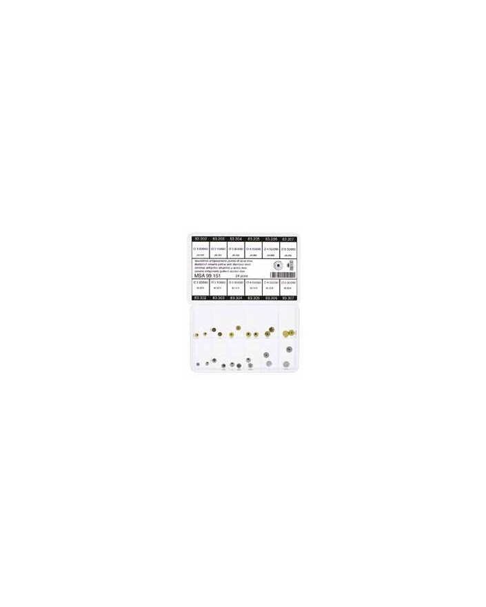 Assortiment de couronnes antipoussière couleur acier et jaunes ; acier inoxydable.