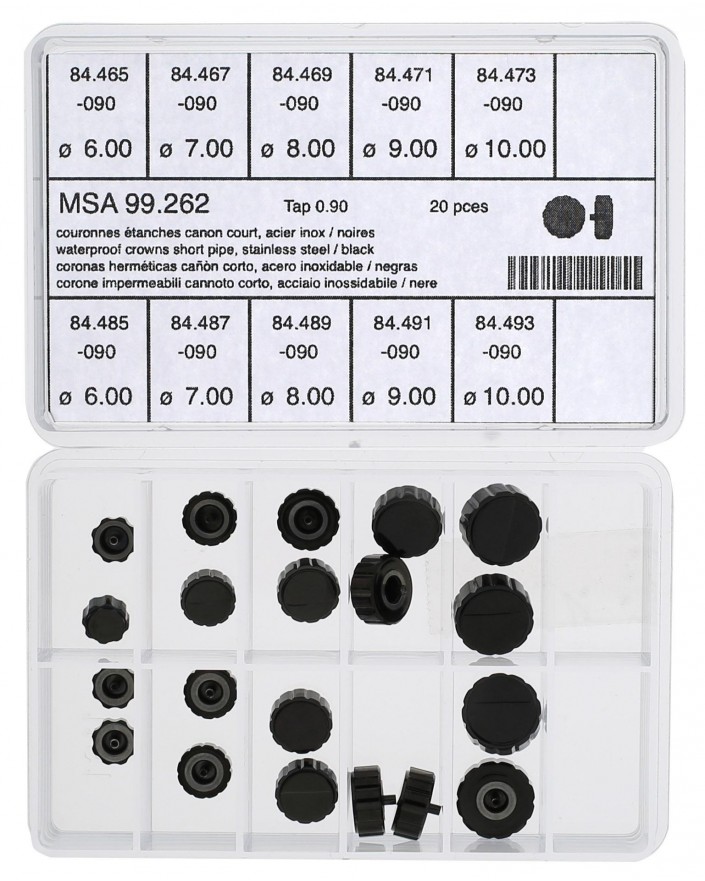ASSORTIMENT DE COURONNES ÉTANCHES CANON COURT, ACIER INOXYDABLE / NOIRES / 20 PIÈCES