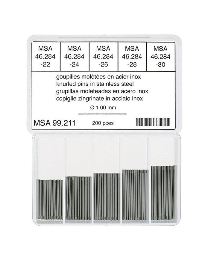 Assortiment de goupilles moletées ; acier inoxydable.