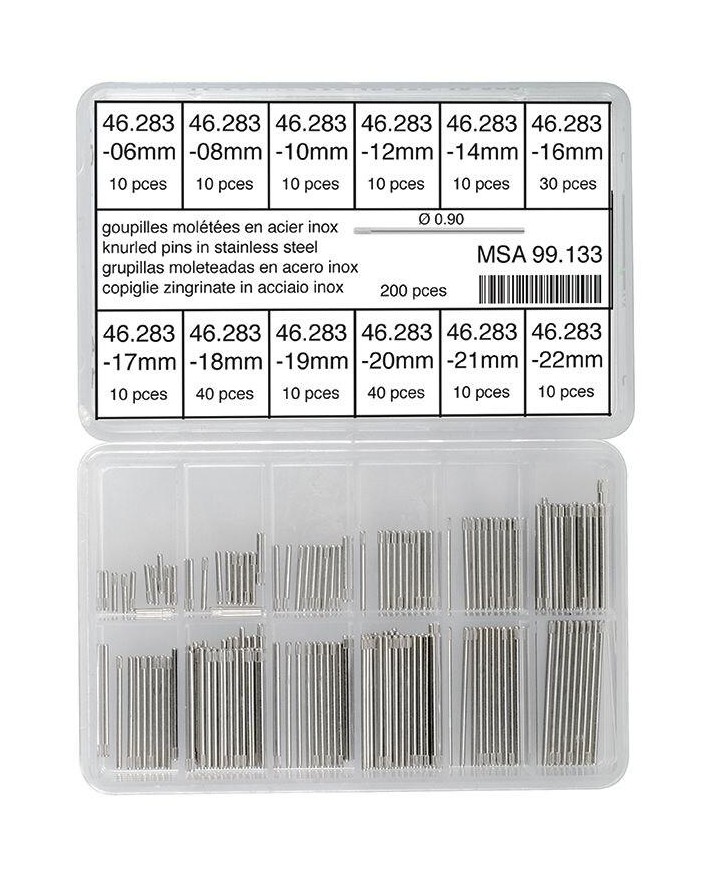 Assortiment de goupilles moletées ; acier inoxydable