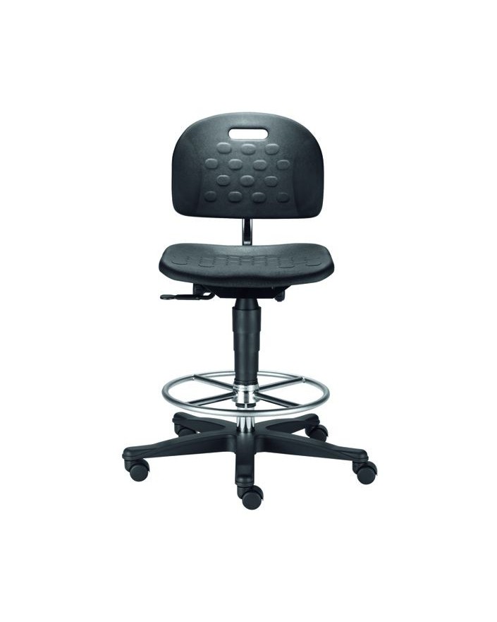 CHAISE D'HORLOGER TYPE TECLINE EN PU AVEC ROULETTES FREINÉES À VIDE ET REPOSE-PIEDS, HAUTEUR ASSISE 42...53 cm