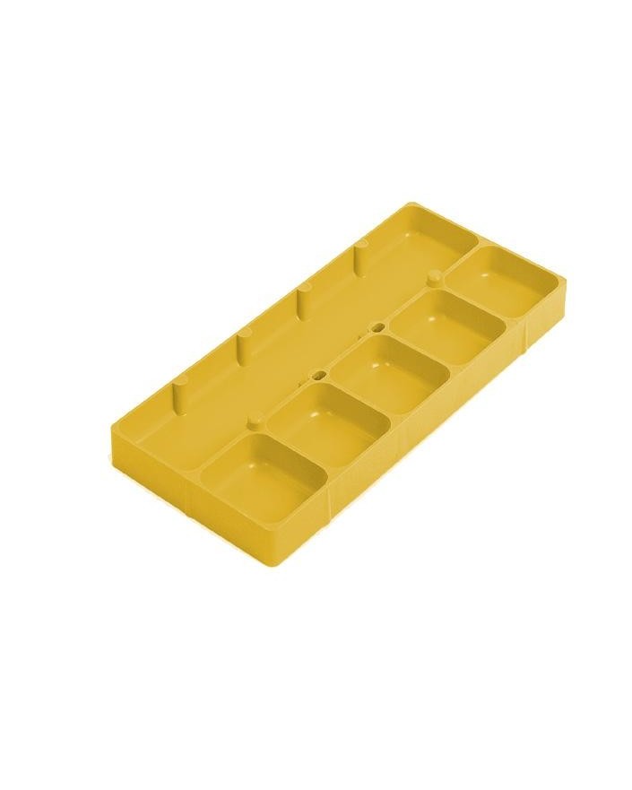 FOND DE BOÎTE EN PLASTIQUE EMPILABLE À 6 CASES (1x 233x49x15 - 5x 49x44x15 mm), JAUNE / EXT. 236 x 105 x 17 mm