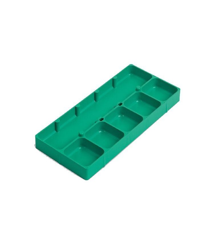 FOND DE BOÎTE EN PLASTIQUE EMPILABLE À 6 CASES (1x 233x49x15 - 5x 49x44x15 mm), VERT / EXT. 236 x 105 x 17 mm