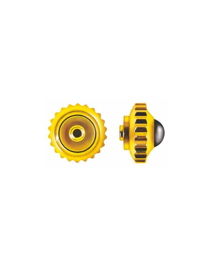 Couronnes antipoussière jaunes avec pierre noire ; acier inoxydable.