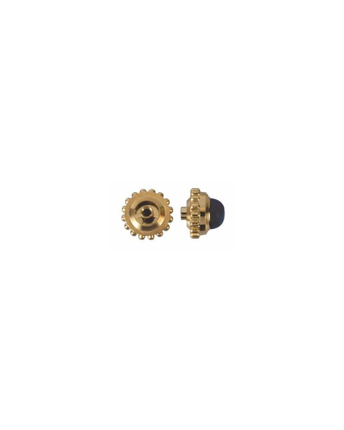 Couronnes antipoussière couleur jaunes avec pierre bleue ou bleu foncé ; acier inoxydable.