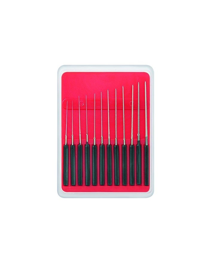Assortiment de 12 équarrissoirs extra fins avec manche