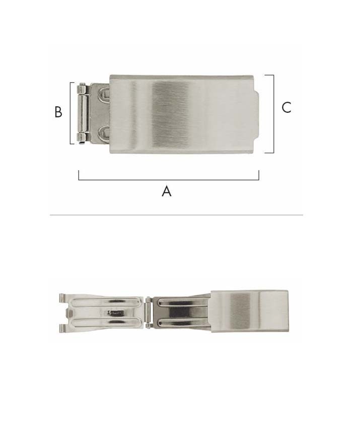 FERMOIR DÉPLOYANT, ACIER INOXYDABLE / A 38.50 - B 15.50 - C 18 mm / POUR BRACELETS 18 mm