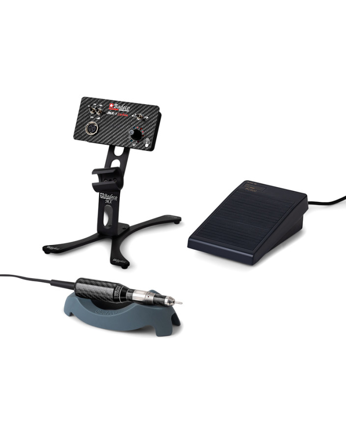L'unité de commande Badeco MX1 Carbon est petite, légère, maniable et pourtant puissante, ce qui la rend particulièrement adaptée aux micromoteurs à couple élevé pouvant atteindre 20 000 tr/min. Elle dispose d'une connexion pour micromoteur et enregistre automatiquement la vitesse pour la commande manuelle et la commande via la pédale.