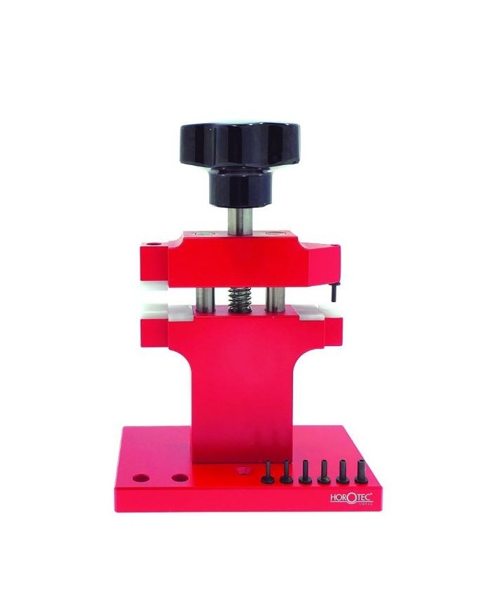 Potence pour chasser et déchasser les poussoirs et les tubes de couronnes à pression facilement et sans dégâts.