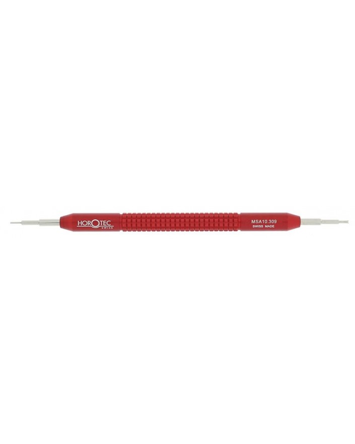 OUTIL POUR POSER/ENLEVER LES BARRETTES, MANCHE EN ALUMINIUM ELOXÉ ROUGE Ø 8 mm / POINTE ET FOURCHETTE EN ACIER INOXYDABLE / L140 mm