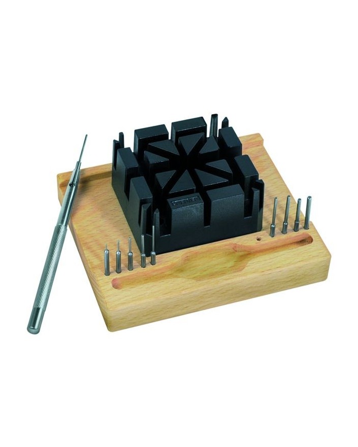 1.10, 1.20, 1.40, 1.50, 2.00 mm) et 1 socle en bois.
