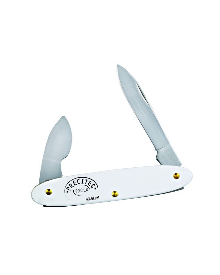 OUVRE-BOÎTE AVEC MANCHE EN ALUMINIUM BLANC ET 2 LAMES RÉTRACTABLES EN ACIER INOXYDABLE POUR OUVRIR LES BOÎTES AVEC FONDS À PRESSION, L83 mm