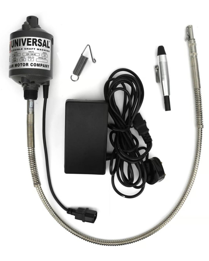ARBRE FLEXIBLE EN MÉTAL Conçu pour un fonctionnement à grande vitesse jusqu'à 15000 - 25000 pour les moteurs à spirale de 200 W et 125 W. La surface extérieure est recouverte d'un revêtement métallique résistant aux hautes températures et un fil d'acier inoxydable est placé à l'intérieur pour augmenter la durabilité et la durée de vie. L'arbre flexible universel est utilisé en toute sécurité dans la bijouterie, la dentisterie, le polissage de moules et d'autres applications. Fabriqué avec des matériaux de haute qualité, cet arbre flexible transmet la puissance des moteurs aux pièces à main de manière souple, silencieuse et sans vibration. Diamètre de l'arbre : Ø5mmRoulements : Longueur : 970 mmConnexion du moteur et de la pièce à main : UniverselSens de rotation : CW - sens des aiguilles d'une montreTorsion : R100 mm.