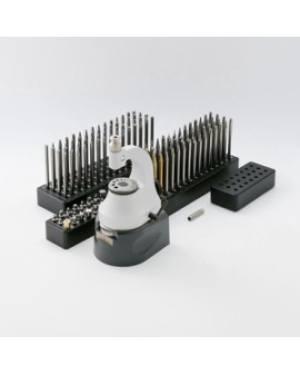 Potence à river et à chasser STAR, avec 120 rivoirs et 24 tasseaux, avec socle, en mallette