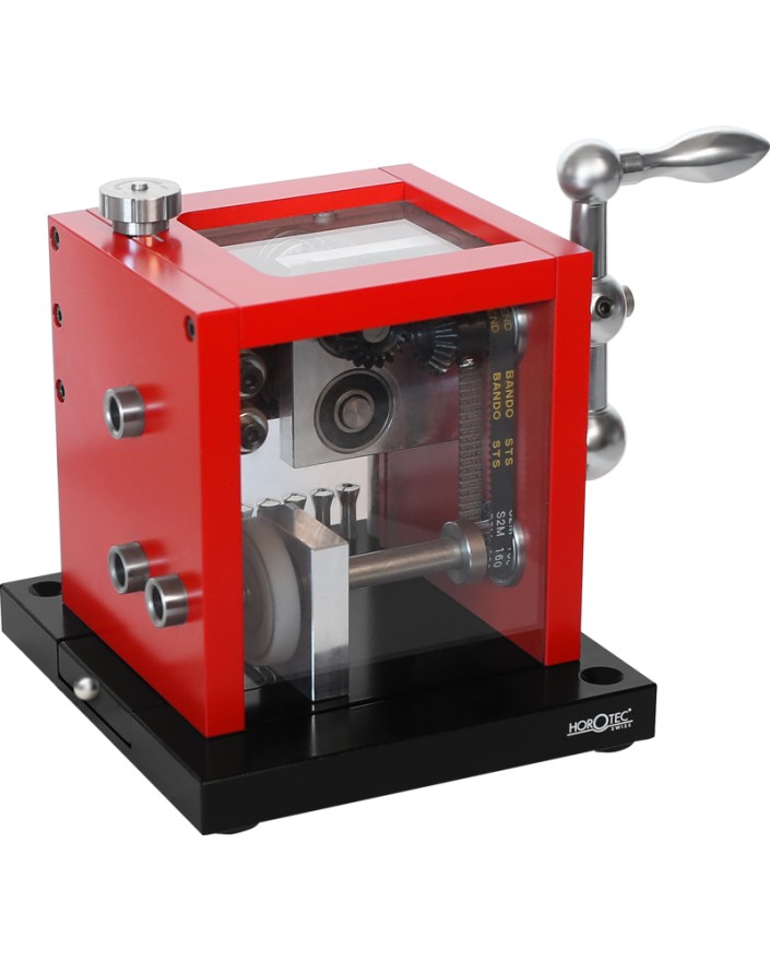 Dispositif robuste et élégant à former les mèches de tournevis équipé de deux meulettes Borazon CBN cylindriques grain B91 moyen à écartement ajustable et d’une pierre Arkansas (forme meule).- Ce principe permet d’obtenir une mèche parallèle avec une largeur maîtrisée- La manipulation se trouve facilitée et évite d’endommager les fentes de vis- L’horloger peut ainsi travailler de manière optimale en adaptant le mèche à la géométrie de la vis à traiter- Les meulettes CBN et la pierre Arkansas sont réversibles et interchangeables. Livré avec 1 porte-outil, 5 pinces P4.5 Ø 0.50-1.00 / Ø 1.10-1.50 / Ø 1.60-2.00 / Ø 2.10-2.50 / Ø 2.60-3.00 mm.