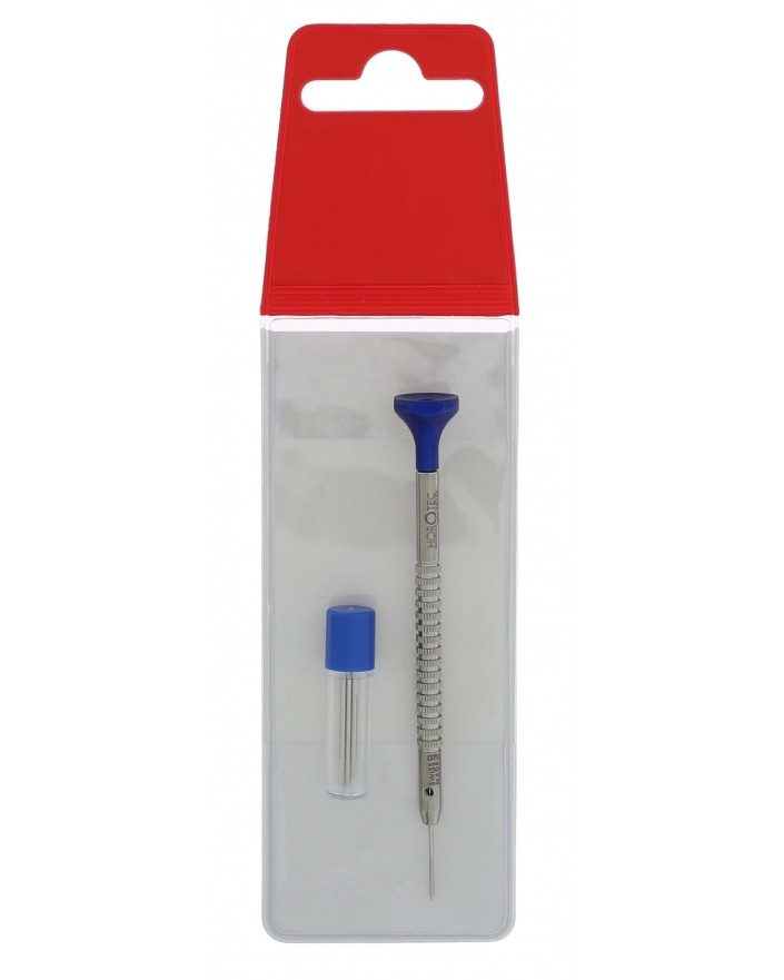 TOURNEVIS D'HORLOGER TÊTE BLEU FONCÉ PÂLE, Ø 0.70 mm / TUBE AVEC 3 MÈCHES / DANS POCHETTE EN PLASTIQUE