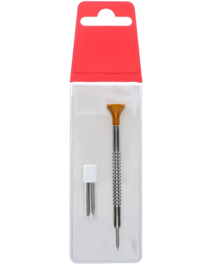 TOURNEVIS D'HORLOGER TÊTE ORANGE, Ø 1.80 mm / TUBE AVEC 3 MÈCHES / DANS POCHETTE EN PLASTIQUE